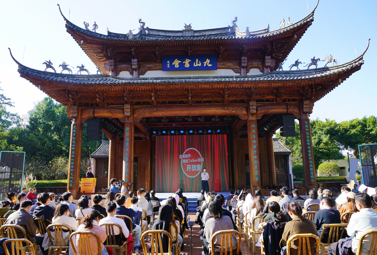 冬日暖阳洒落青石板,古戏台前笑语盈盈。近日,学习贯彻党的二十届四中全会精神鹿城区青年理论宣讲活动在九山书会热闹上演。没有主席台、不设固定座位,观众或坐竹椅、或倚廊柱,来去自由;台上青年轮番登台,用顺口溜、短视频梗、微型舞台剧甚至手语课堂,将政策理论讲得“有料又有趣”,现场掌声、笑声、惊叹声此起彼伏。