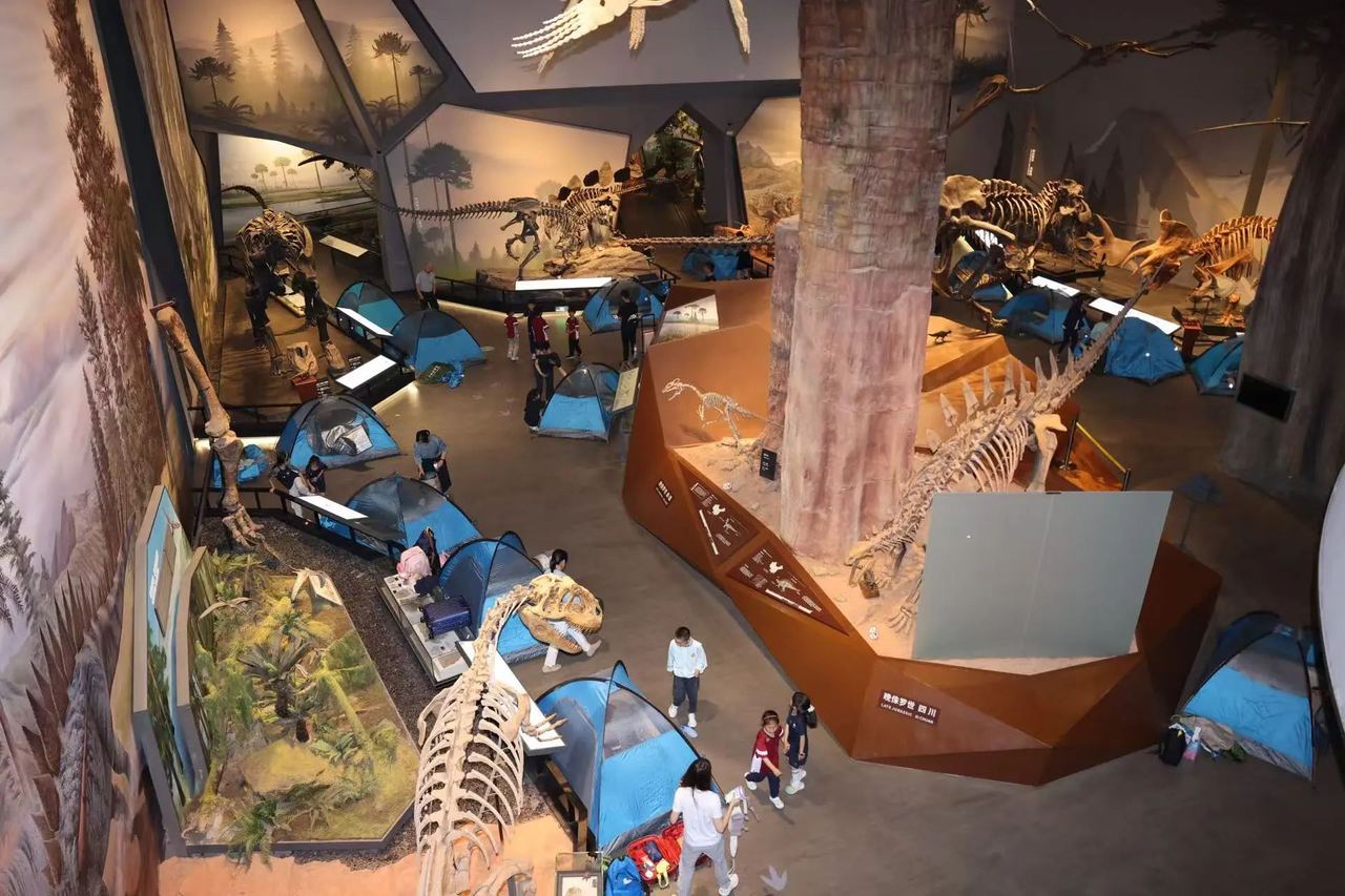 金陵图数字艺术展 德基艺术博物馆供图 开放时间长,展览品质更不打折扣。该馆推出的“金陵图数字艺术展”,在全球首创“人物入画、实时跟随”的互动观展模式。观众可“穿越”至传奇古画《金陵图》的繁华街市,与500多个热情好客的“画中人”交流互动。这一独特观展体验引发了“先看金陵图,再游南京城”的旅游热潮。 专业的运营模式,也是重要支撑。 汉魏洛阳故城遗址博物馆馆长慕鹏介绍,在该馆建设阶段,社会运营方就深度参与展厅动线、空间布局及配套设施规划,从源头保障了博物馆空间与未来市场活力的无缝衔接。 内容运营方面,博物馆把控文化方向,提供核心素材与场地空间;企业则发挥商业运营优势,将历史底蕴转化为市场青睐的体验产品。“1+1>2”,让夜游项目具备长期造血能力。 博物馆夜游的升级,核心更在于重构公众角色。 这个夏天,浙江自然博物院安吉馆特别推出“博物馆奇妙夜”夜宿季活动,孩子们不仅可以体验4D观影、主题参观、手工制作、主题馆夜宿等环节,还能化身小小探险家,在夜色中的博物馆探究科学谜题。